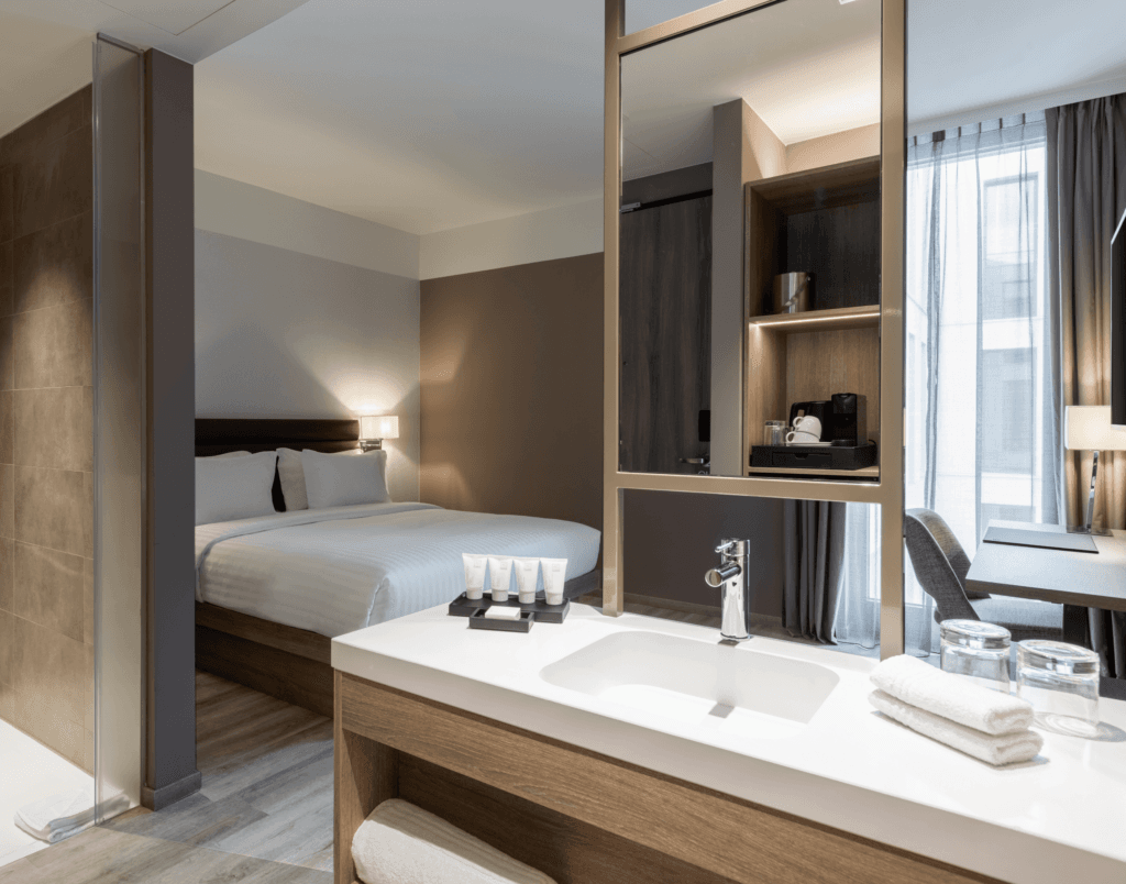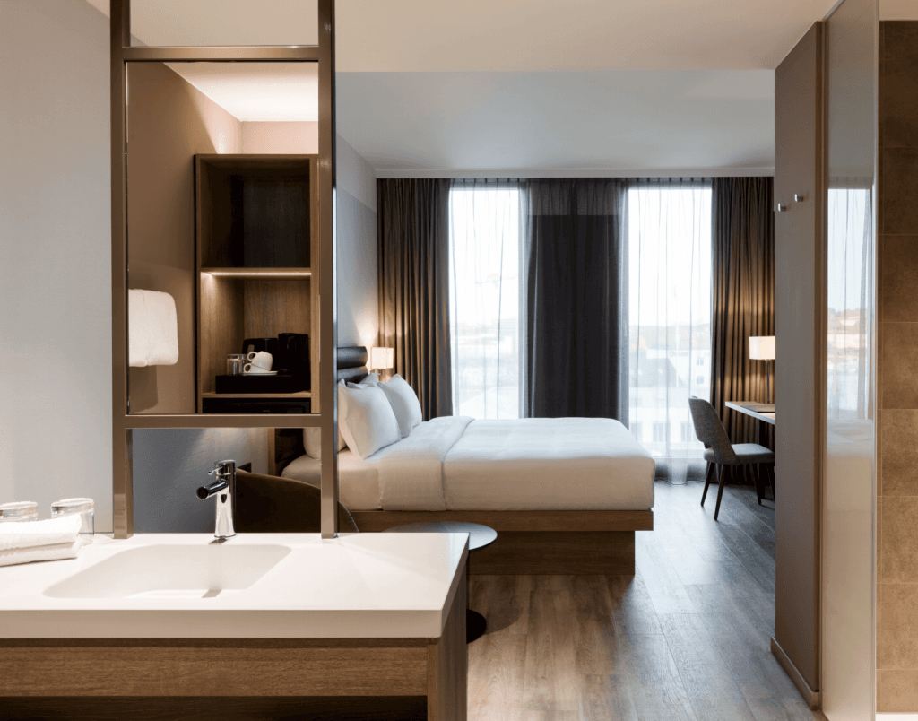 Dankzij het vakmanschap van Stabilo is het interieur van het hotel een verfijnde mix van luxe materialen, warme kleuren en strakke lijnen geworden. Dit maatwerkproject zorgt voor een perfecte balans tussen stedelijke dynamiek en rustgevend comfort, waarmee de bezoeker een ultieme hotelervaring krijgt. Het hotelinterieur sluit naadloos aan op de merkidentiteit van Marriott International en biedt gasten een verfijnde, moderne sfeer die uitnodigt tot ontspanning.