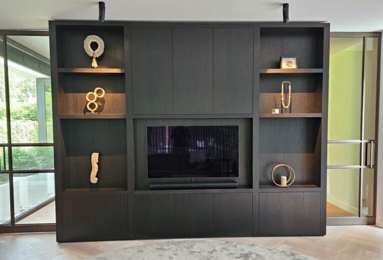 De zorgvuldige afwerking en het gebruik van hoogwaardige materialen maken deze kastenwand een waardevolle toevoeging aan uw interieur. Of het nu in een slaapkamer, werkkamer of andere ruimte is, deze ensuite kastenwand biedt de ideale combinatie van stijl en functionaliteit.