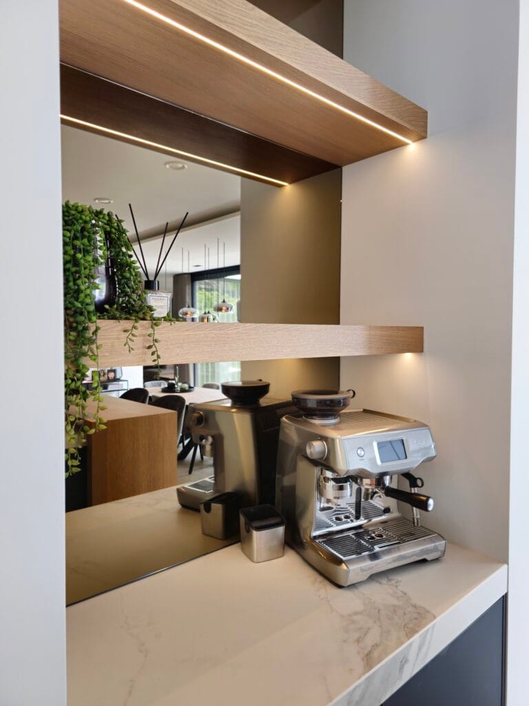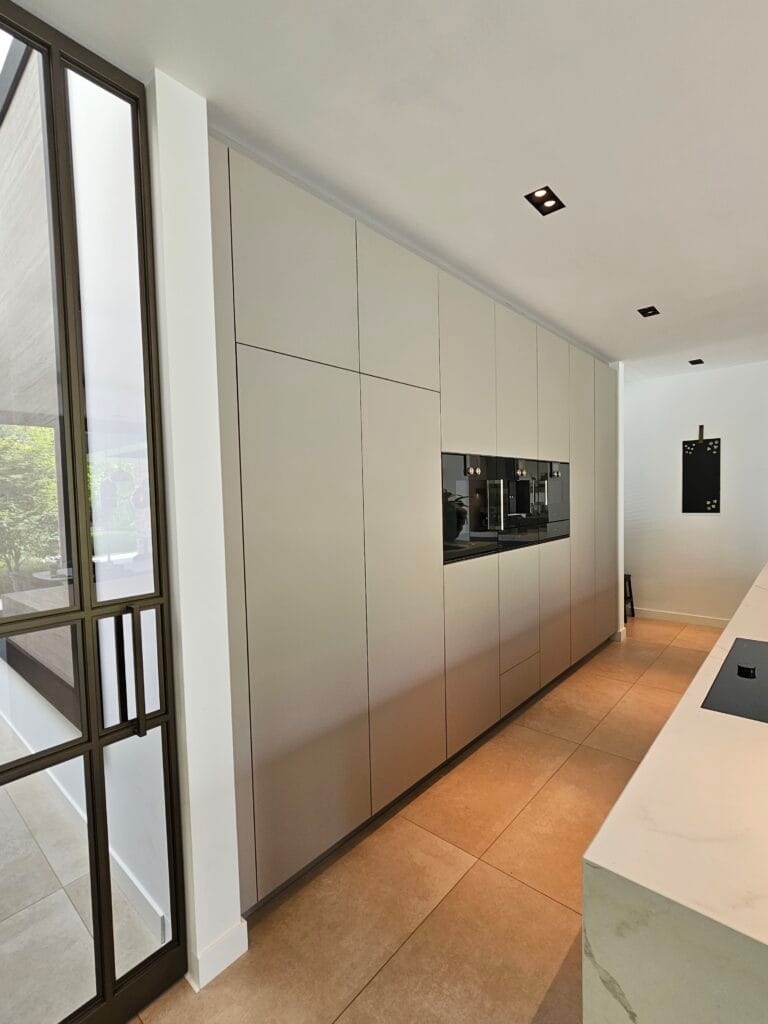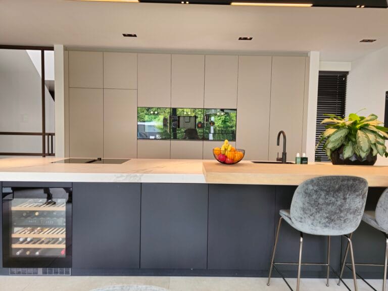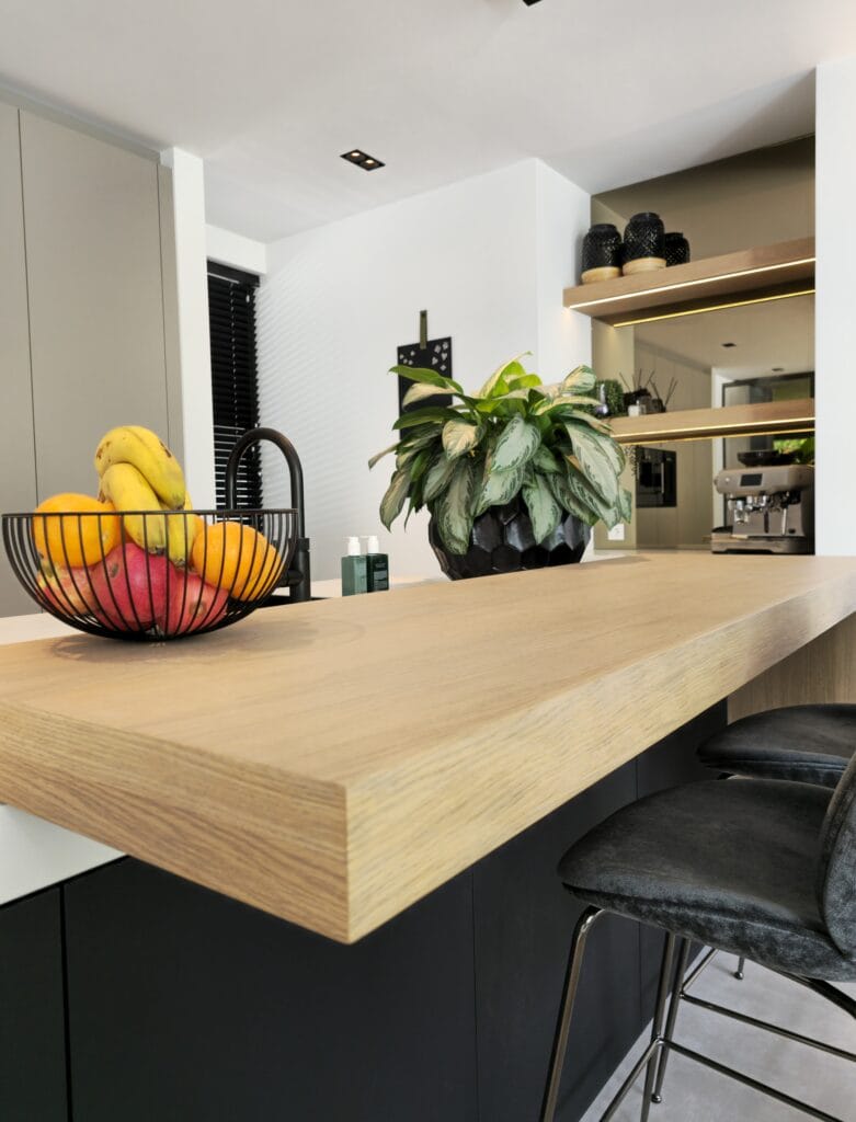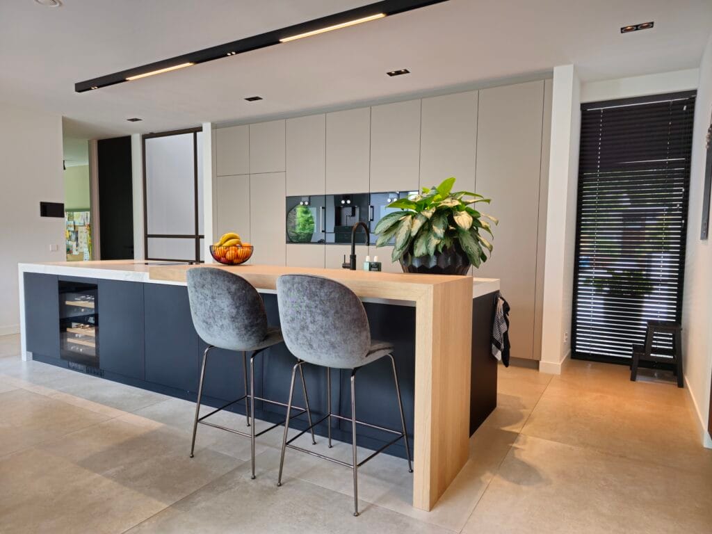 In de moderne leefkeuken, gerealiseerd door Stabilo Interieurbouw, staat comfort en stijl centraal. Het ontwerp maakt gebruik van zachte kleuren en hoogwaardige materialen, waardoor een strakke en uitnodigende ruimte ontstaat. Deze keuken is meer dan alleen een functionele plek; het is een ruimte die uitnodigt tot samenzijn. Of het nu gaat om een ontspannen ontbijt, een gezellig diner met vrienden of een borrel, deze keuken biedt een ideale setting waar je je thuis voelt en kunt genieten van het leven.